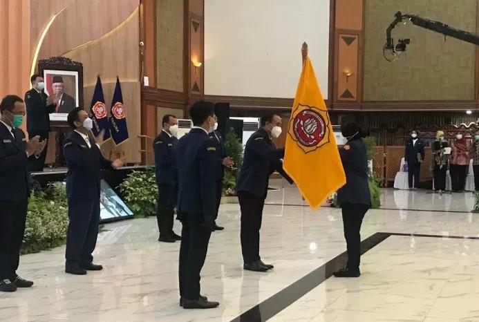 Menteri Sosial Tri Rismaharini didampingi Dirjen Pemberdayaan Sosial Edi Suharto melantik Pengurus Nasional Karang Taruna dan Majelis Pertimbangan Nasional Karang Taruna masa Bhakti 2020-2025.