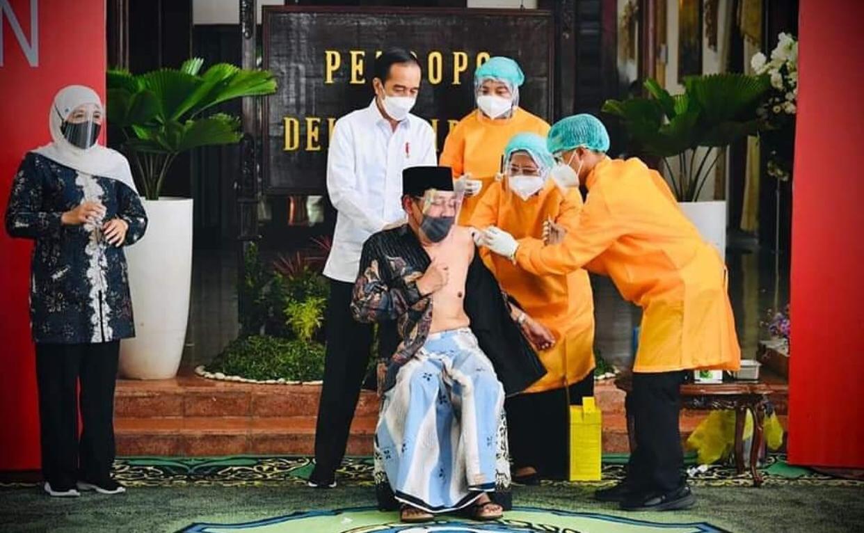 Jawa Timur, Berita Rakyat Sumatera – Sejumlah kiai dan para pengasuh pondok pesantren di Provinsi Jawa Timur menyatakan kesiapannya untuk memperoleh suntikan dosis vaksinasi AstraZeneca. Hal tersebut disampaikan Presiden Joko Widodo dalam pernyataannya di Kabupaten Sidoarjo, pada Senin, 22 Maret 2021.
