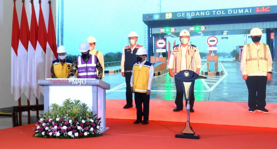 Siang itu, pada pukul 14.00 WIB, Presiden meresmikan jalan tol Pekanbaru-Dumai sejauh 131,5 kilometer secara virtual dari Istana Kepresidenan Bogor. Peresmian jalan tol secara virtual ini merupakan yang pertama kali dilakukan oleh Presiden Joko Widodo dan merupakan sebuah inovasi dalam kondisi adaptasi kebiasaan baru di tengah pandemi Covid-19.