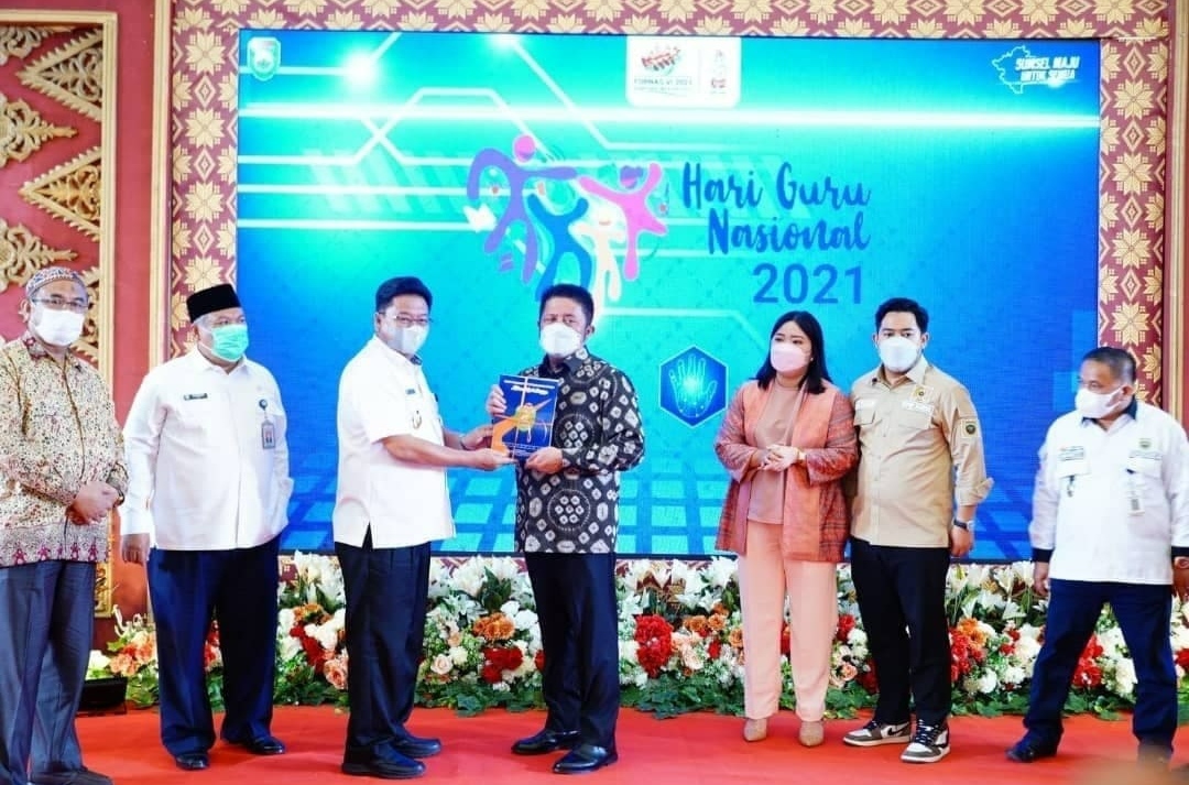 Palembang, Berita Rakyat Sumatera – Gubernur Sumatera Selatan H. Herman Deru (HD) menghadiri Gebyar Puncak Peringatan Hari Guru Nasional Ke 27 Tahun 2021 sekaligus melaunching Jurnal Pendidikan dan Pembelajaran Inovatif yang berjudul Askara Wiyata Sriwijaya bertempat di Dining Hall Jakabaring Sport City.