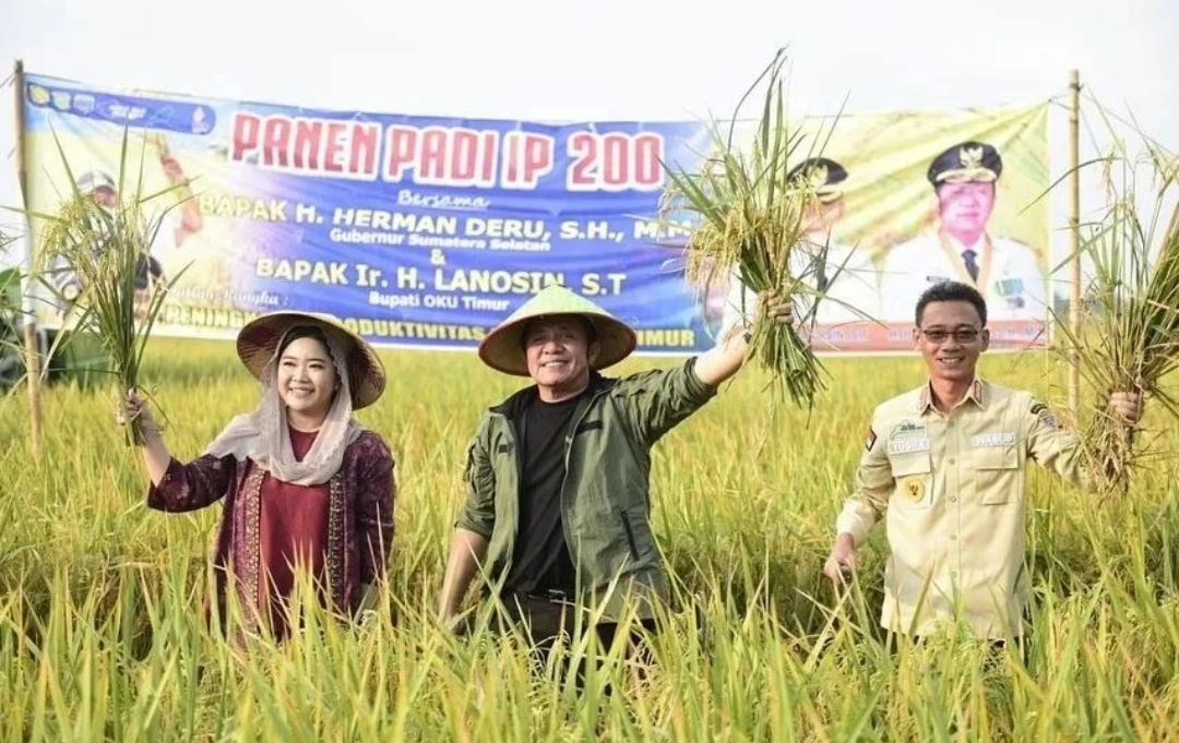 Atas dasar itu pula, Gubernur Herman Deru gencar mensosialisasikam program Gerakan Sumsel Mandiri Pangan (GSMP) hingga ke desa-desa. Salah satunya dengan melakukan panen padi IP200 dan menanam benih pepaya California saat kunker ke Desa Minanga Tengah, Kecamatan Semendawai Barat, Kabupatwn OKU Timur.