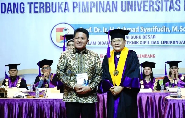 Hal tersebut diutarakan pada saat menghadiri Sidang Terbuka Pimpinan Universitas Bina Darma pada acara pengukuhan   Prof.Dr.Ir.H.Achmad Syarifudin, M.Sc sebagai Guru Besar Dalam Bidang Ilmu Teknik Sipil dan Lingkungan