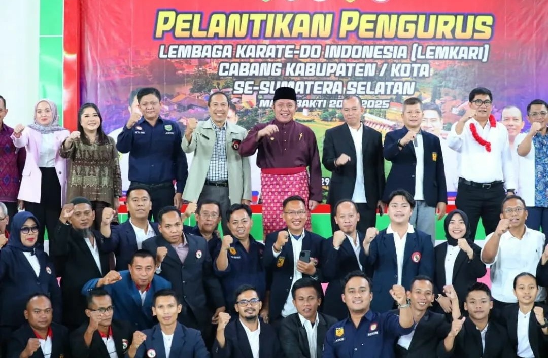 OKU, Berita Rakyat Sumatera – Disela kunjungan kerjanya di Kabupaten OKU, Gubernur Sumsel H Herman Deru berkesempatan untuk menghadiri pelantikan pengurus cabang Lembaga Karate-Do Indonesia (LEMKARI) Kabupaten OKU.