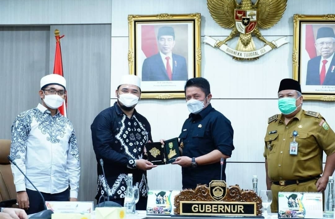 Palembang, Berita Rakyat Sumatera – Gubernur Sumatera Selatan H Herman Deru melepas santri-santri terbaik di Sumatera Selatan untuk melanjutkan Studi ke Ma’had Al-Jami’ah Al-Islamiyah Lid Dirosah Al-Khossoh Kairo Mesir.