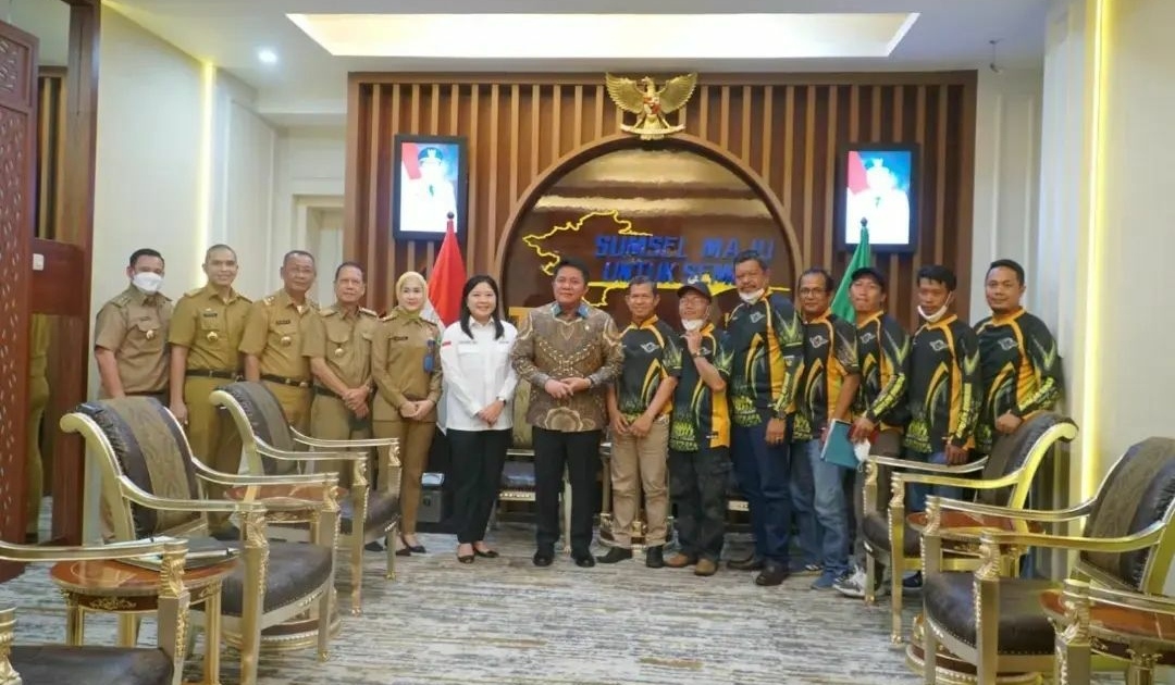 Palembang, Berita Rakyat Sumatera – Gubernur Sumsel H Herman Deru saat menerima audiensj Pengurus Angler Sumsel Fishing Club (AS FC) Sumsel mengapresiasi kontribusi pengurus Angler Sumsel Fishing Club (AS FC) Sumsel dalam mendorong kebangkitan ekonomi Sumsel melalui penyelenggaraan event lomba mancing gabus metropolitan Casting Tournament 2022 memperebutkan Piala Gubernur Sumsel.
