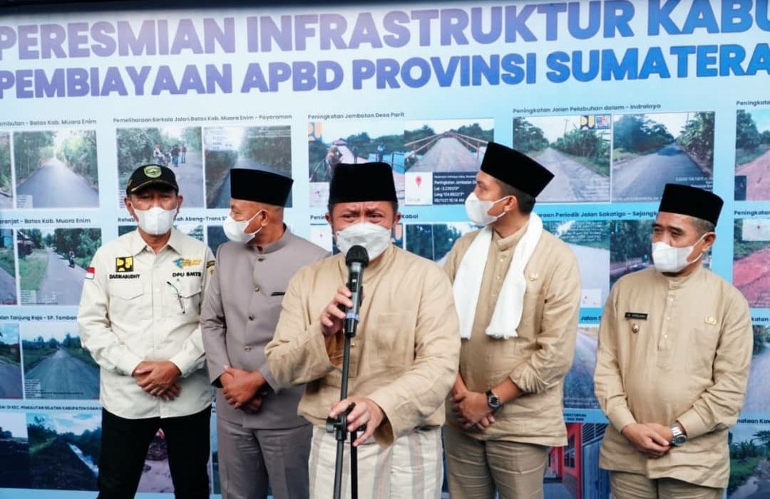 Hal tersebut disampaikan Gubernur Sumatera Selatan H Herman Deru saat meresmikan 62 kegiatan Infrastruktur fisik maupun non fisik di Tahun Anggaran 2021 dengan total anggaran sebesar Rp. 253. 354.220.600, -. Anggaran tersebut berasal dari APBD Prov Sumsel dan bantuan Gubernur Sumsel bersifat khusus.