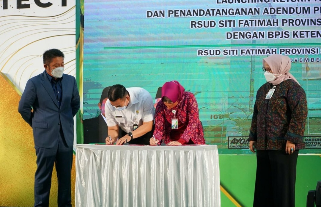 Launching program tersebut dilaksanakan bersamaan dengan penandatanganan adendum perjanjian kerjasama BPJS Ketenagakerjaan dengan RSUD Siti Fatimah.