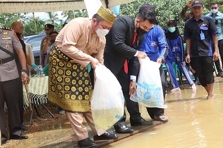 Musi Rawas Utara, Berita Rakyat Sumatera – Usai menghadiri rapat Paripurna Istimewah DPRD Kabupaten Musi Rawas Utara (Muratara) dalam rangka peringatan hari jadi ke-8 Kabupaten Muratara, Gubernur Sumsel H. Herman Deru (HD) beserta rombongan melakukan penaburan benih ikan di Sungai Rawas tepatnya di Desa Lawang Agung, Kec. Rupit Kabupaten Muratara.