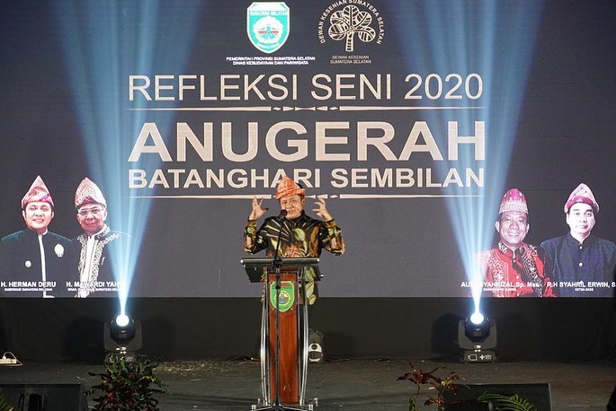 Palembang, Berita Rakyat Sumatera – Gubernur Sumsel H Herman Deru menghadiri acara pemberian Anugerah Seni Batanghari Sembilan Tahun 2020. Dalam kesempatan itu, HD mengaku bangga dan mengapresiasi tekad para pelaku seni di Sumsel yang tetap peduli terhadap kesenian kebudayaan daerah meskipun ditengah modernisasi.