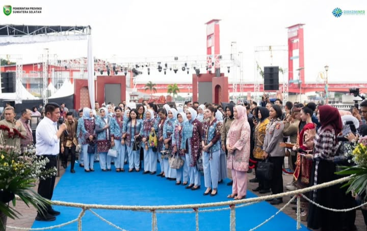 Palembang, Berita Rakyat Sumatera – Gubernur Sumatera Selatan, H. Herman Deru bersama Ketua Dekranasda Prov. Sumsel, Hj. Feby Herman Deru mendampingi Ketua Umum Dekranas, Selvi Ananda Gibran Rakabuming melakukan penggunting pita di Pelataran Benteng Kuto Besak (BKB) Palembang dalam rangka membuka Sriwijaya Expo Tahun 2025 (Jumat, 1/8/2025).