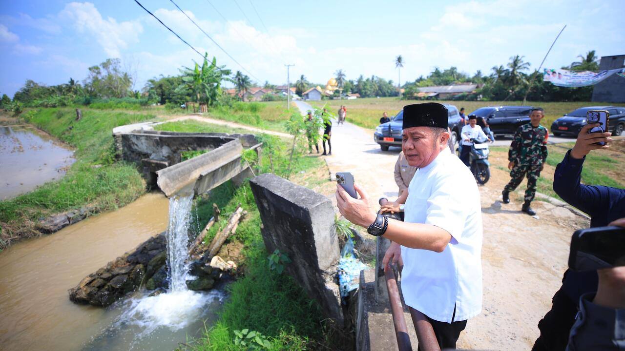 Dalam perjalanan pulang, ia melihat kondisi irigasi yang rusak dan segera turun langsung untuk meninjau.