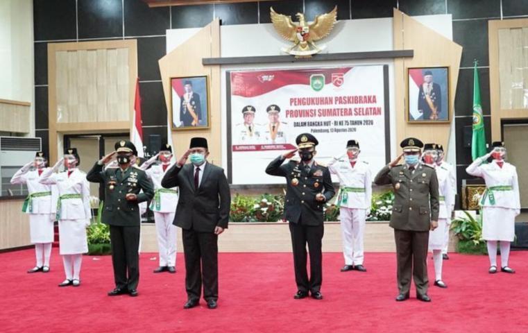 “Dengan memohon ridho Allah SWT, pada hari ini saya mengukuhkan Paskibraka yang akan bertugas di Prov Sumsel pada tanggal 17 Agustus 2020, selanjutnya kepada para Bupati dan Walikota se-Sumsel untuk mengukuhkan Paskibraka Kab/Kota,” ujar Herman Deru saat prosesi pengukuhan.