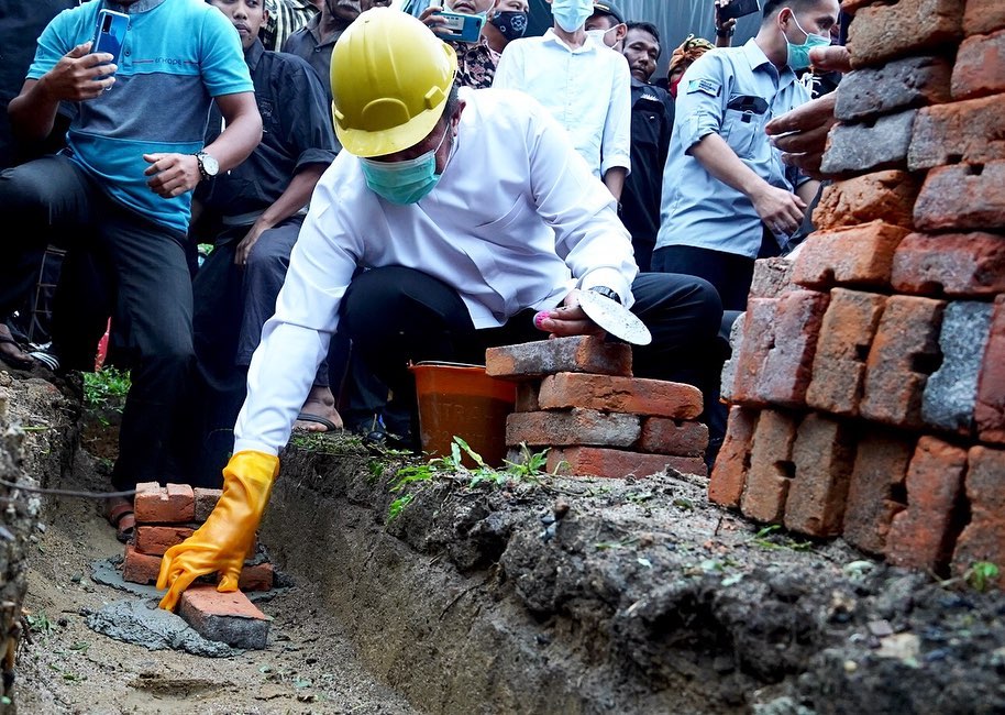 Palembang, Berita Rakyat Sumatera – Gubernur Sumsel H Herman Deru melakukan peletakan batu pertama Padepokan Persaudaraan Setia Hati Terate (PSHT) Ranting Belitang II sekaligus sosialisasi karhutla dan protokol kesehatan covid-19.