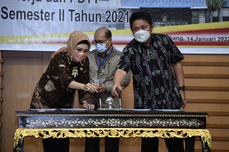 Palembang, Berita Rakyat Sumatera – Ketua DPRD Provinsi Sumatera Selatan, Hj. R.A. Anita Noeringhati, SH., MH., dan Gubernur Sumsel, H. Herman Deru, menerima Laporan Hasil Pemeriksaan (LHP) Kinerja dan PDTT Semester II dari Badan Pemeriksa Keuangan (BPK) Perwakilan Prov. Sumsel atas Belanja Daerah Tahun Anggaran 2021