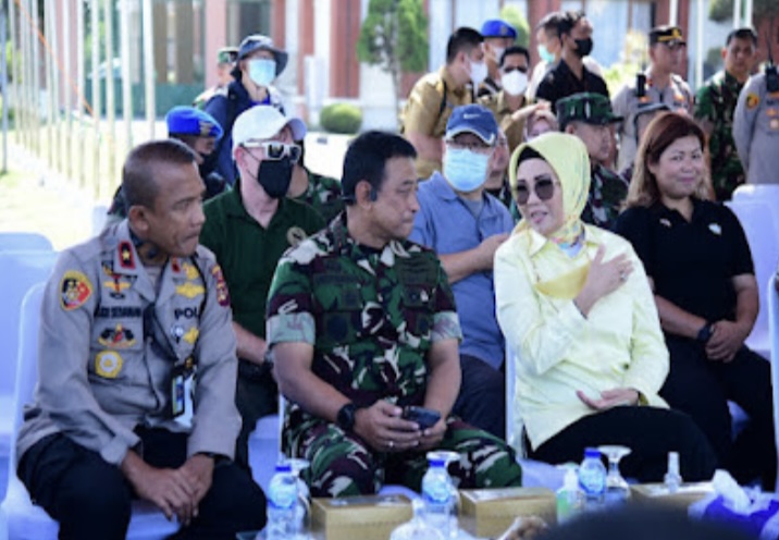 Palembang, Berita Rakyat Sumatera – Ketua DPRD Provinsi Sumatera Selatan, RA Anita Noeringhati, menghadiri peninjauan kegiatan latihan hirain/c-rain latma garuda shield (Super Garuda Shield 2022 Matra Udara) bersama Panglima TNI Jenderal Andika Perkasa di Bandara Udara Sultan Mahmud Badaruddin II, Palembang. Selasa, 09/8/22.