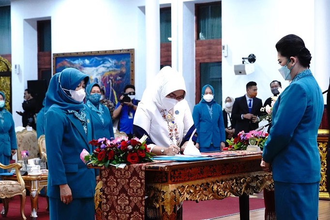 Turut hadir Wakil Ketua TP PKK Prov. Sumsel, Hj. Fauziah Mawardi Yahya, Plh. Bupati OKU, Drs. H. Edward Candra, MH, Penjabat Ketua TP PKK Kab. PALI, Hj. Elly Ismiani, S.Pd dan Plh. Ketua TP PKK Kab. OKU, Desy Asnayati Edward. (ojn/ril)