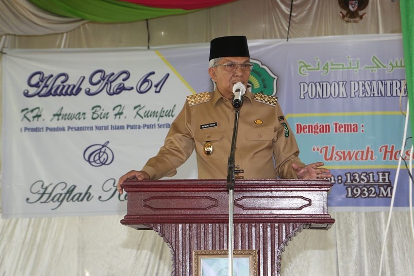 Palembang, Berita Rakyat Sumatera – Wakil Gubernur Sumsel Mawardi Yahya menghadiri peringatan haul ke-61 KH. Anwar Bin H. Kumpul (pendiri ponpes Nurul Islam Putra-Putri Seribandung) sekaligus haflah ke-89 ponpes Nurul Islam, juga penyerahan ijazah santriwan/santriwati dan siswa.