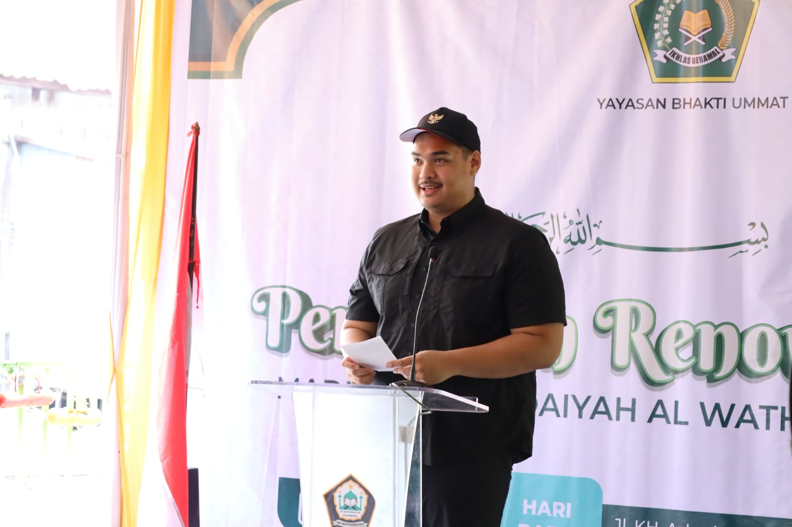 Sementara itu Ketua Yayasan Bhakti Ummat Al-Wathoniyah Kemas Ilham Akbar, S.H menyampaikan perjalanan berdirinya yayasan Bhakti Ummat yang di inisiasi oleh kakeknya terdahulu dari rumah kayu yang berkeinginan anak-anak disekitar yayasan untuk dapat membaca tulis secara gratis.