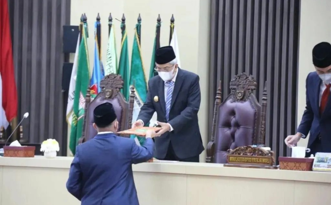 Palembang, Berita Rakyat Sumatera – Wakil Gubernur Sumatera Selatan H. Mawardi Yahya menghadiri Rapat Paripurna LI (51) DPRD Prov Sumsel dengan Agenda, Pandangan Umum Fraksi-fraksi DPRD Prov Sumsel terhadap Raperda Pertanggungjawaban Pelaksanaan APBD Provinsi Sumatera Selatan Tahun Anggaran 2021. Rapat dipimpin oleh Wakil Ketua DPRD Prov. Sumsel H. Muchendi, M. SE,