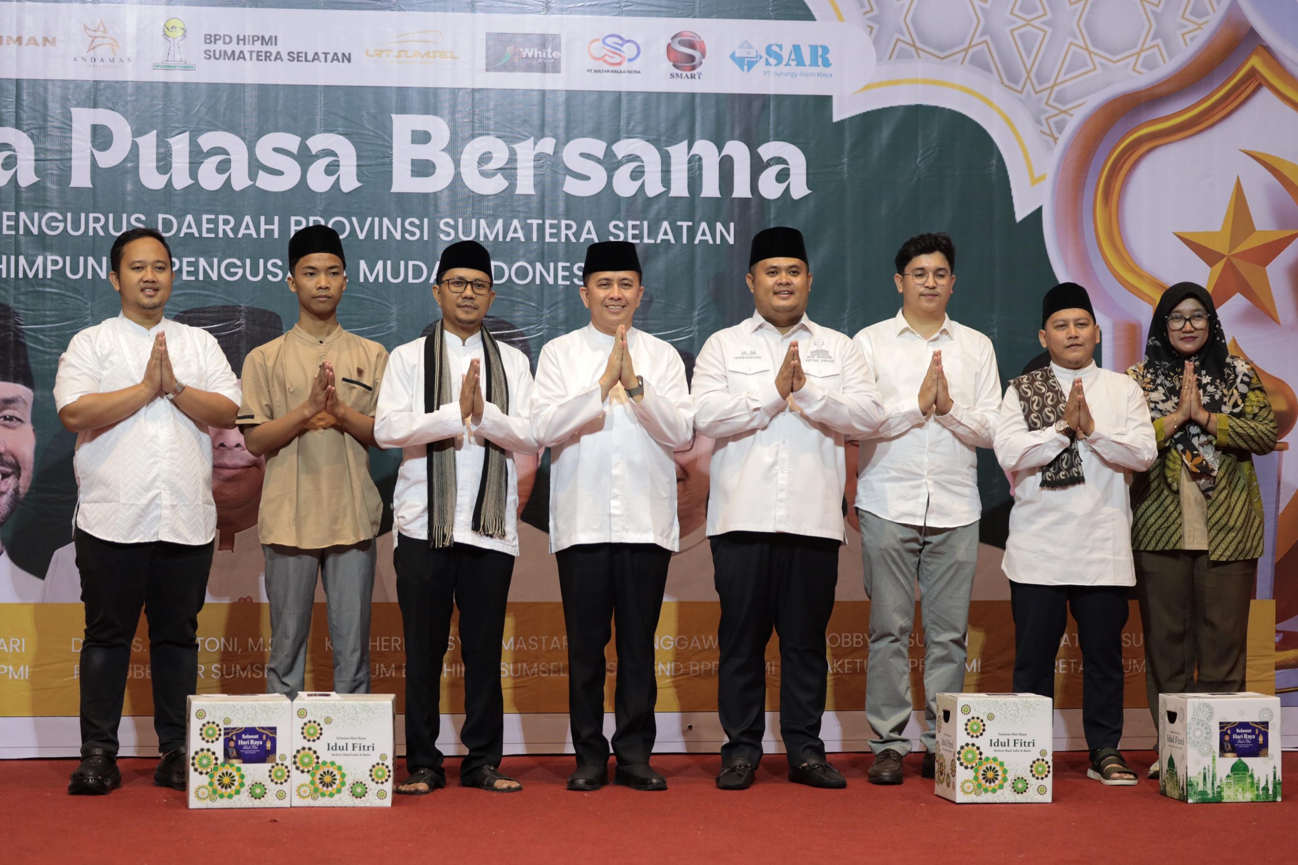 Selanjutnya Pj. Gubernur Sumsel, A. Fatoni memberikan secara simbolik santunan yang diberikan oleh HIPMI Sumsel kepada perwakilan pondok pesantren, panti asuhan, ulama dan wartawan.