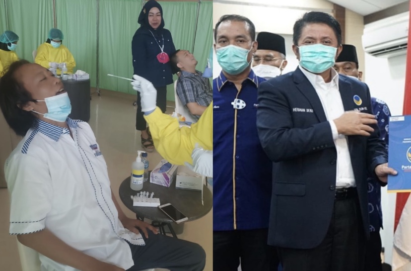Pantauan Berita Rakyat Sumatera di lokasi persiapan acara Rakorwil, terlihat antrian semua peserta siap untuk mengikuti Swab antigen, terlihat Sri Sutandi anggota DPRD Sumsel dan Eddy serta Meity Pengurus DPW yang mendapat giliran di Swab. (ojn)