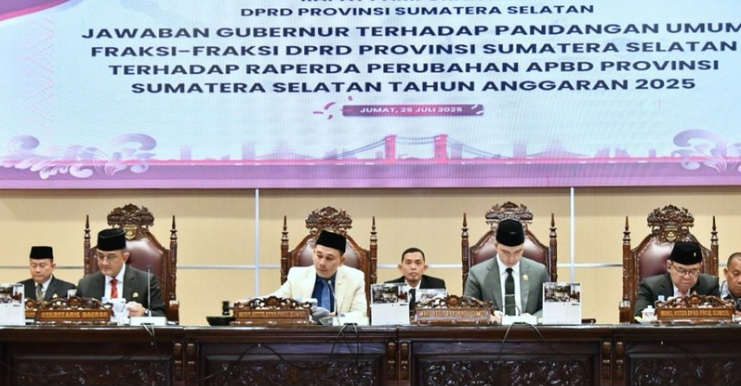 Agenda rapat membahas jawaban Gubernur Sumsel terhadap pandangan umum fraksi-fraksi DPRD mengenai Rancangan Peraturan Daerah (Raperda) tentang Perubahan APBD Tahun Anggaran 2025.