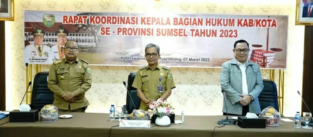 Palembang, Berita Rakyat Sumatera – Sekda Sumsel Ir. S. A. Supriono mengapresiasi Rapat koordinasi (Rakor) Kepala Bagian Hukum Kabupaten/Kota Se-Sumsel sebagai bentuk koordinasi satu sama lain dalam menjalankan tugas pemerintahan dalam bidang hukum di daerah masing-masing.