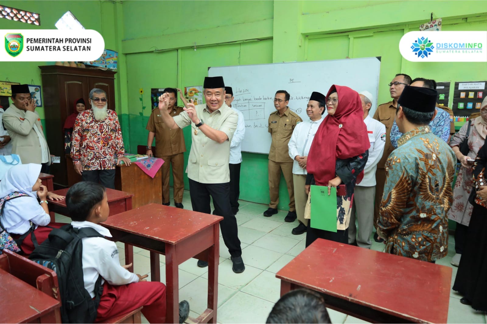 Palembang, Berita Rakyat Sumatera – Dalam kunjungan ke kelas belajar, Wakil Menteri Pendidikan Dasar dan Menengah Dr. Fajar Riza Ulhaq, M.Si mengajak para siswa yang duduk dibangku kelas dua (dua) Sekolah Dasar untuk bernyanyi dan berinteraksi dengan pertanyaan-pertanyaan seperti siapa pendiri Muhammadiyah, serta menanyakan cita-cita para murid.