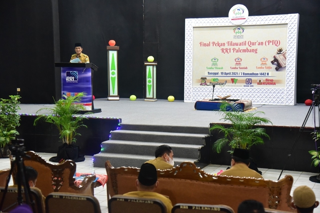 Palembang, Berita Rakyat Sumatera – Gubernur Sumatera Selatan H Herman Deru diwakili Plh Asisten I Bidang Pemerintahan dan Kesra H Akhmad Najib menghadiri penutupan Pekan Tilawatil Qur’an (PTQ) RRI Palembang sekaligus menyerahkan hadiah kepada para juara lomba Tilawah, Tausiah, dan Tahfid.