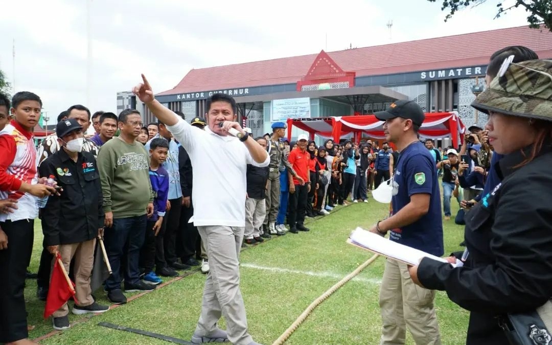 Palembang, Berita Rakyat Sumatera – Hari kemerdekaan Republik Indonesia ke 77 tahun dirayakan dan dimeriahkan oleh seluruh warga Indonesia tanpa terkecuali. Untuk itu Gubernur Sumsel, H. Herman Deru (HD) didampingi Ketua KORMI Prov. Sumsel, Hj. Samantha Tivani, B.Bus, MIB membuka perlombaan olahraga tradisional tingkat SLTA Se – Kota Palembang.