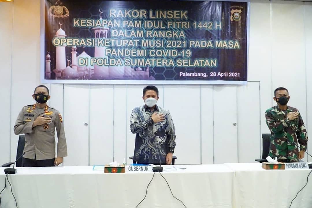 Palembang, Berita Rakyat Sumatera – Sampai hari ke 16 dalam menjalani hari puasa suasana masih kondusif aman dan terkendali. Hal tersebut diutarakan Gubernur Sumatera Selatan H Herman Deru  saat membuka  Rapat Koordinasi  Lintas Sektoral  kesiapan PAM Idul Fitri 1442 H dalam rangka Operasi Ketupat Musi 2021 pada masa covid-19