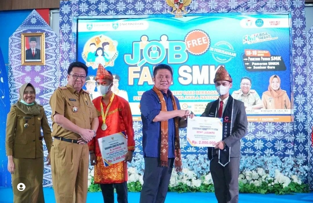 “Kegiatan ini juga diselenggarakan selama dua hari dari tanggal 18 s/d 19 Oktober 2022 dengan tujuan untuk mempertemukan para alumni SMK dengan pengguna tenaga kerja atau perusahaan secara langsung dalam rangka mengurangi angka pengangguran yang berdampak pada menurunya angka kemiskinan di Sumsel”, ucapnya.