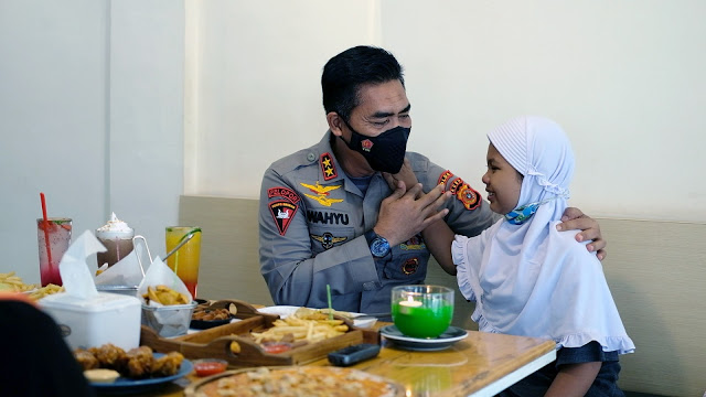 Selepas ashar Kapolda Aceh mendatangi cafe tempat orang tua Nayla bekerja sebagai juru parkir. Segala makanan terbaik disajikan demi menyambut sang bocah tersebut.