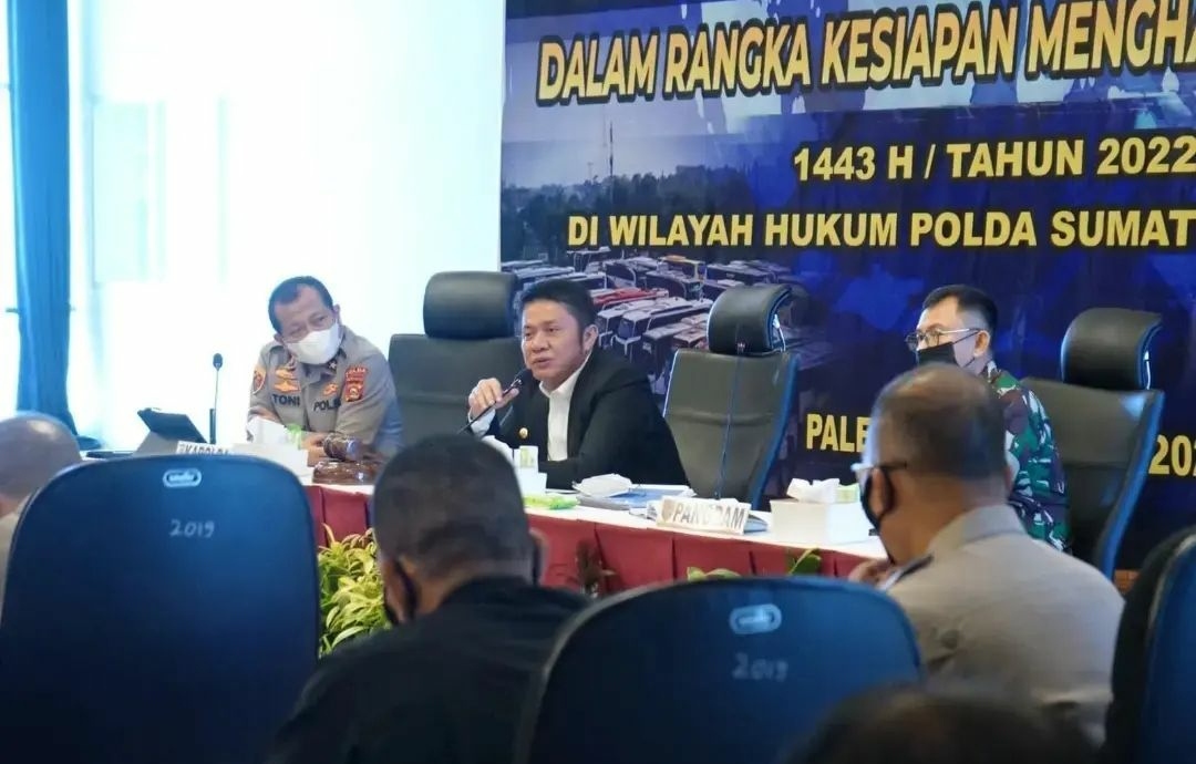 Menjelang Hari Raya Idul Fitri 1443 H yang tinggal. beberapa hari lagi, Gubernur Sumatera Selatan H. Herman Deru memimpin Rapat Koordinasi Lintas Sektoral Kesiapan Dan Rencana Pengamanan Idul Fitri 1443 H Tahun 2022.