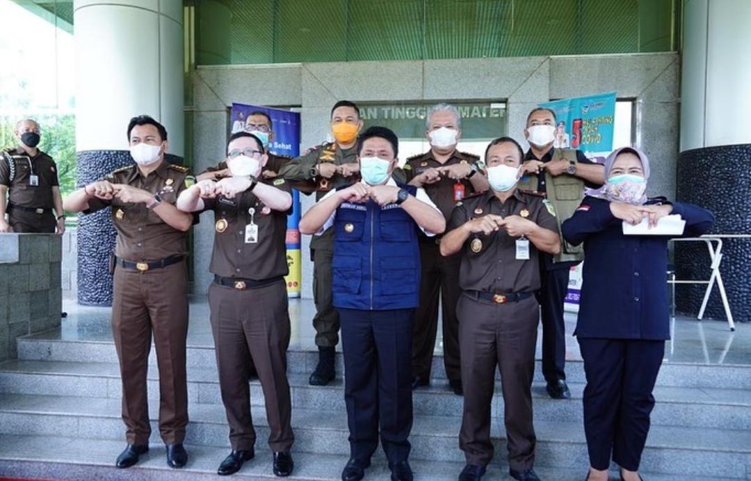 Palembang, Berita Rakyat Sumatera – Gubernur Sumsel H Herman Deru bersama Kepala Kejati Sumsel, Drs M Rum, SH, MH, saat meninjau pelaksanaan vaksinasi covid-19 di lingkungan Kejaksaan Tinggi Provinsi Sumatera Selatan