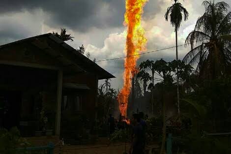 “Dari tiga sumur yang meledak menyisakan satu sumur yang masih mengobarkan api setinggi 20 meteran, lalu asapnya hitam pekat mengarah ke permukiman pak,” kata dia.